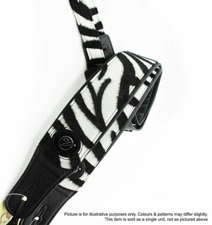 Vorson Black Leather Guitar Strap with Fur-fabric Zebra Pattern