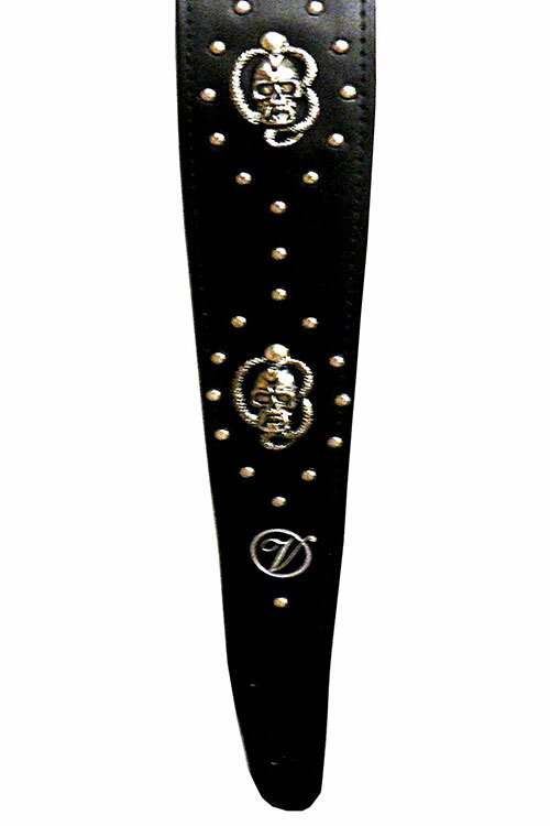 Vorson Black Leather Guitar Strap with Metal Skulls
