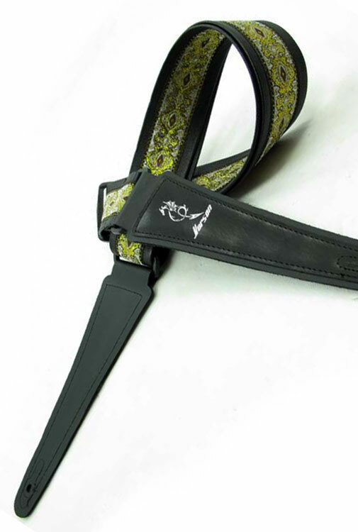 Vorson Black Leather Guitar Strap with Special Design 2 Fabric Inlay