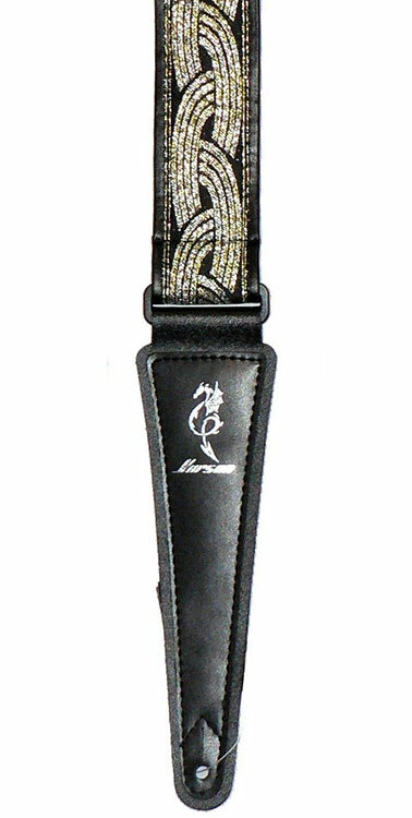 Vorson Black Leather Guitar Strap with Special Design 3 Fabric Inlay