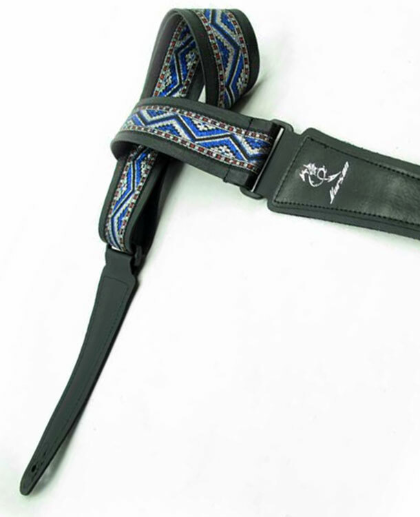 Vorson Black Leather Guitar Strap with Special Design 5 Fabric Inlay
