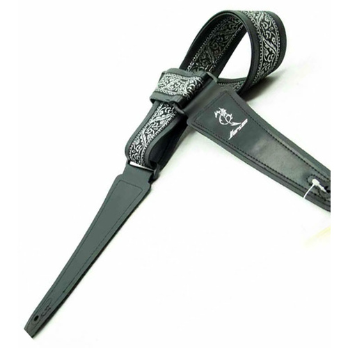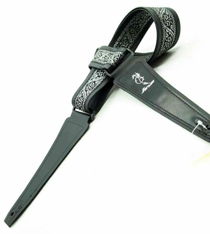 Vorson Black Leather Guitar Strap with Special Design 8 Fabric Inlay