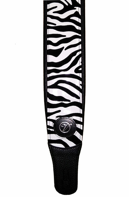 Vorson Black Leather Guitar Strap with Zebra Pattern