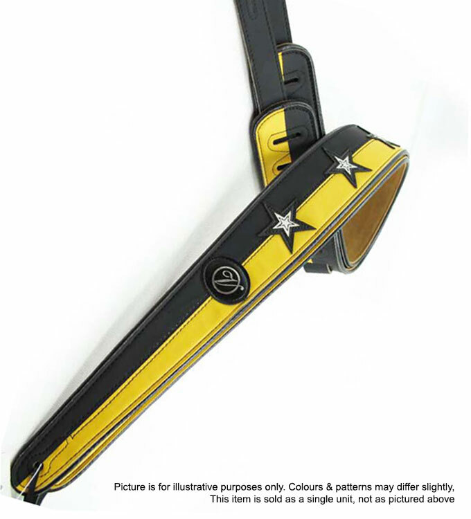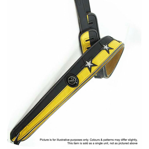 Vorson Black & Yellow Leather Guitar Strap with White Stars