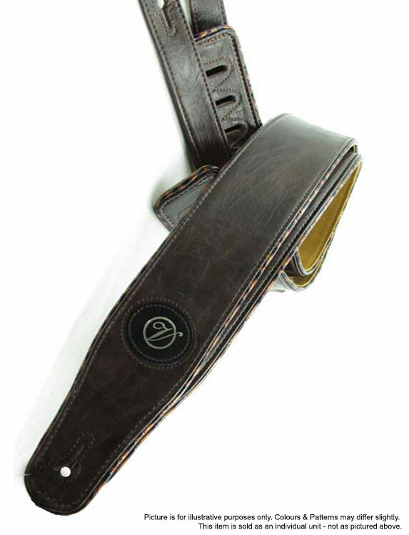 Vorson Dark Brown Leather Guitar Strap with Patterned Piping