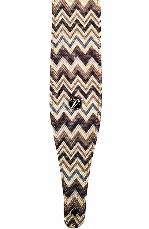 Vorson Linen Fabric Guitar Strap in Grey/Brown Zig Zag Pattern