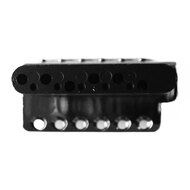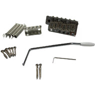 Faithfully reproducing the size and weight of the original, this is a direct retro-fit for the "real thing" but with the added benefit of a push-in vibrato arm (rather than the troublesome original screw-in type). We also staggered the string holes in the sustain block allowing the strings to follow the natural intonation line of the saddles, keeping the strings' "angle of attack" over the saddle's intonation point more consistent, eliminating annoying string "hang-up" giving unrivalled tuning stability.