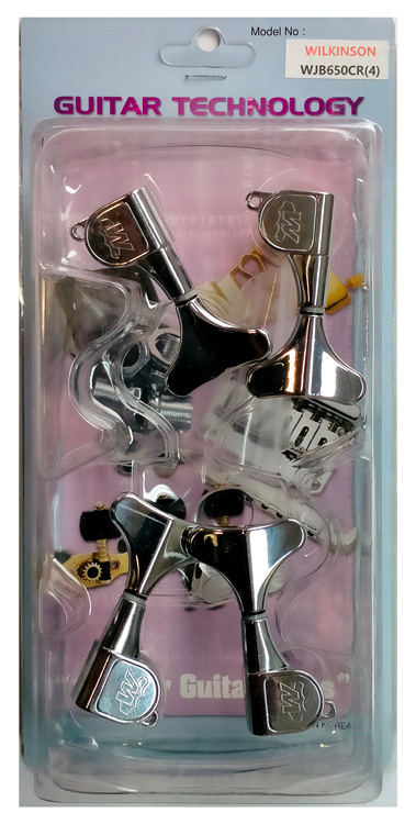 Wilkinson Electric Bass Guitar Sealed Tuning Machines in Chrome Finish with Chrome Contemporary Buttons (4-Inline)