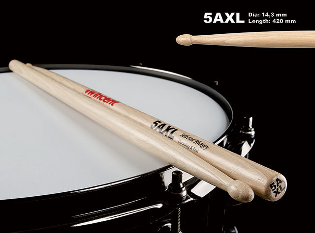 The sticks are treated with our famous UWP (Unique Wax Protection), weighted and pitched in pairs. On top of this, all Wincent sticks have the model-code printed on the butt-end of the stick for easy identification in your stick bag or in your local Music store. Red printed means maple, black for hickory. This has been a Wincent trademark since 2002.