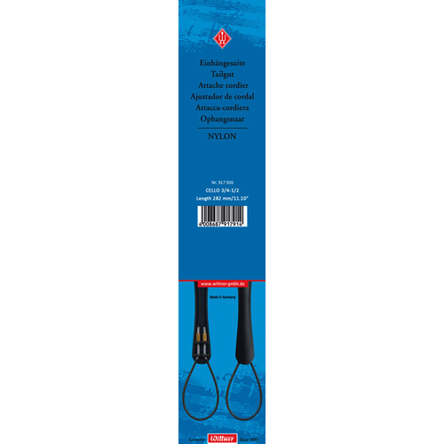 Wittner Nylon Tailpiece Hanger for Cello 3/4 - 1/2. Overall length 282 mm/11.10"