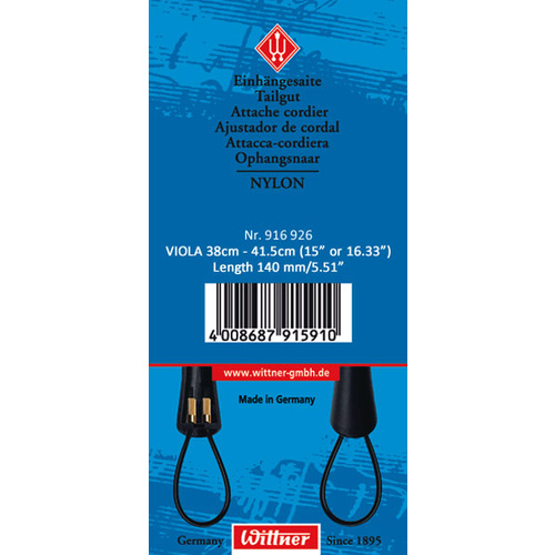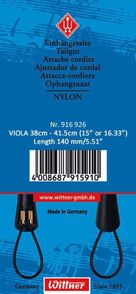 Wittner Nylon Tailpiece Hanger for Viola 38cm - 41.5cm (15" or 16.33"). Overall length 140 mm/5.51"