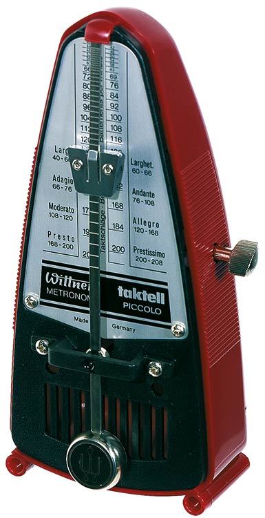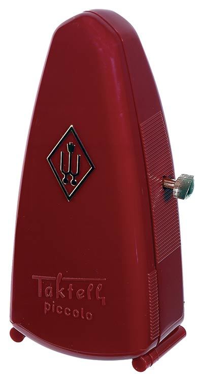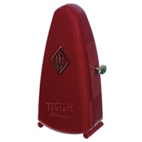 Plastic casing, Ruby colour, without bell metronome with a mechanical clockwork, No batteries required, Made in Germany.