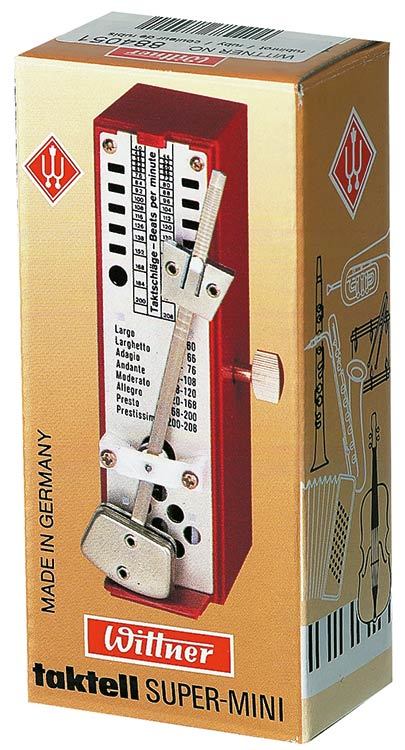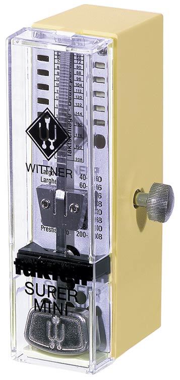 Plastic casing, Ivory colour, without bell metronome with a mechanical clockwork, No batteries required, Made in Germany.