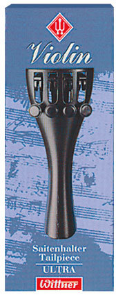 Tailpiece ULTRA is made of a "high-tech" composite material which is ULTRA strong and ULTRA light for Violin 1/16 size with 4 string adjusters, black screws with nylon tailgut.
