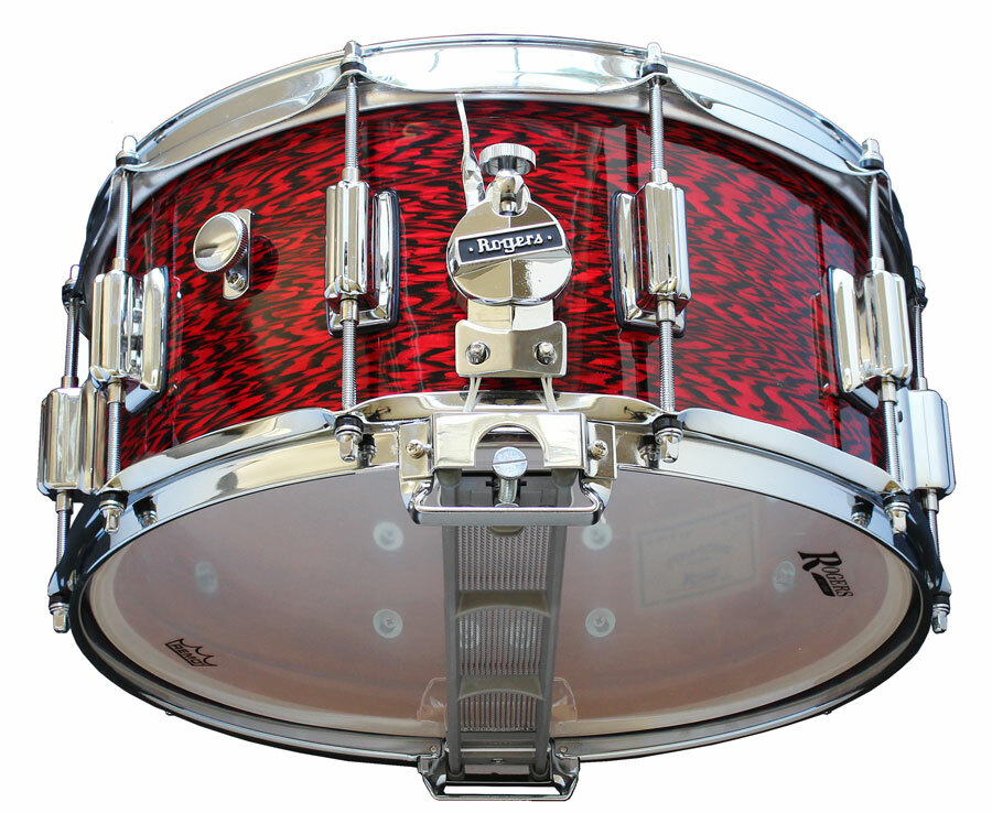 Rogers Beavertail Snare Drum in Red Onyx - Model No. 37RO is the show-stopper, deep shell edition. Red Onyx, selected as the next new finish at the 2018 Winter NAMM Show. Rogers' most revered wood-shell Dyna-Sonic, the Beavertail series.